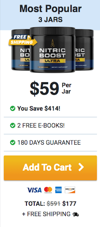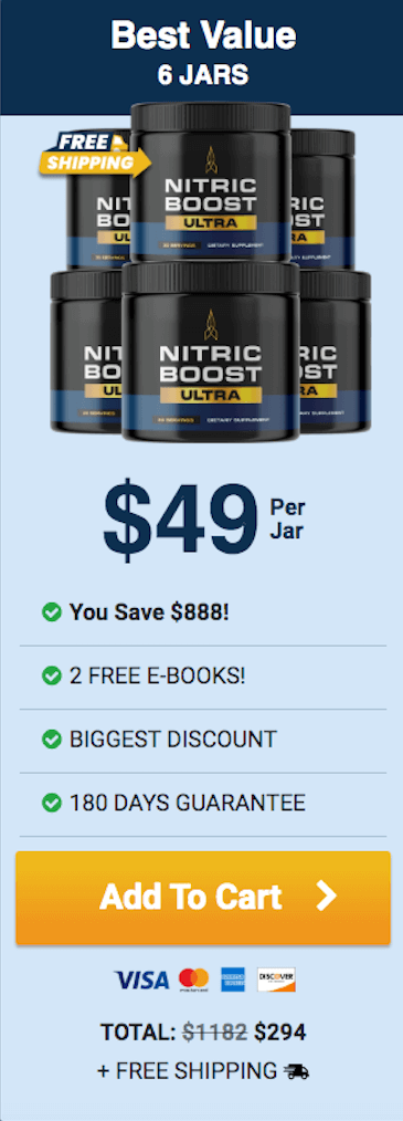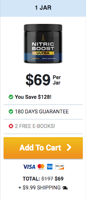 At this moment you can order Nitric Boost Ultra supplement for 75% OFF + FREE US Shipping + 2 FREE Bonuses. This is a Limited-Time Offer and it won’t be available for long.